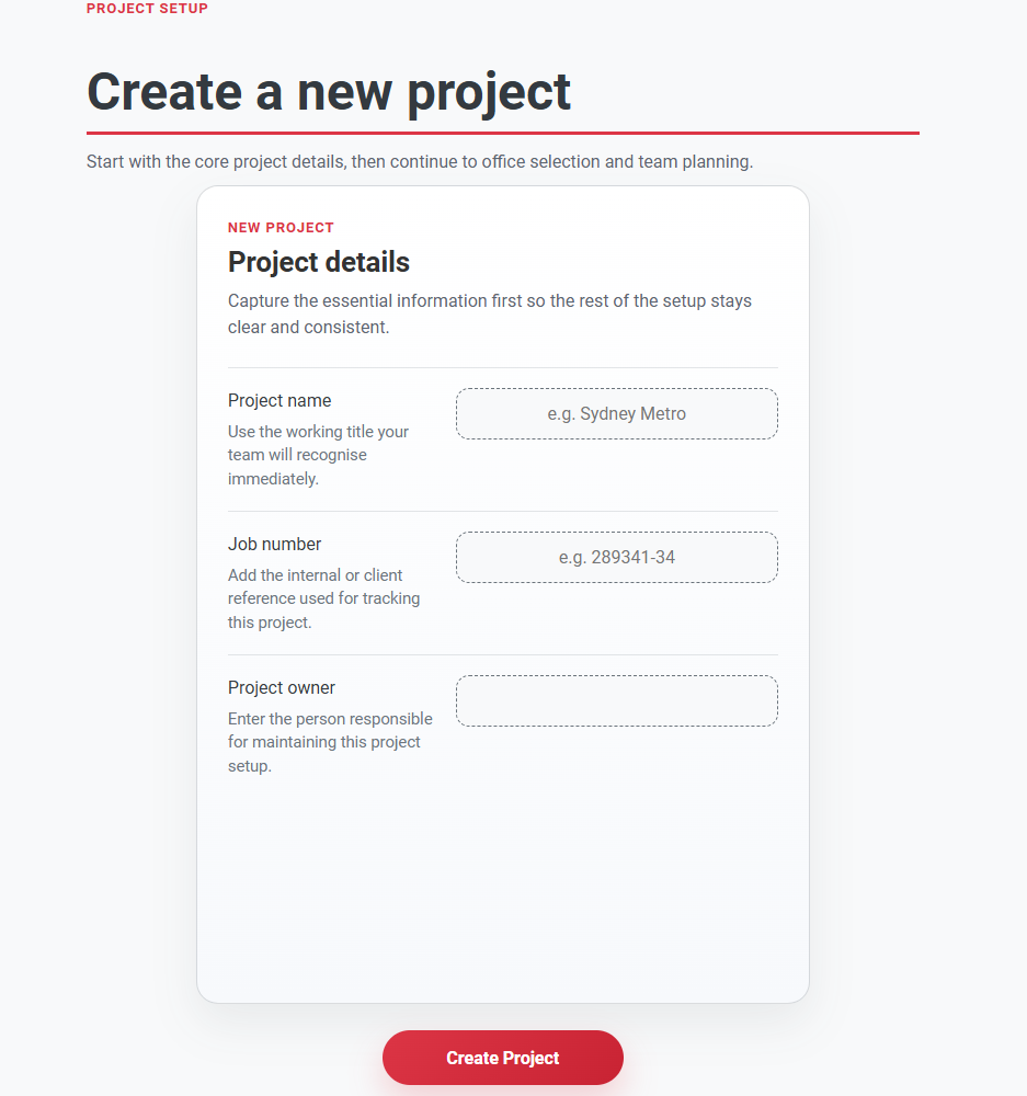 Start by creating a new project and entering basic project information including the project name, job number, owner, and financial year. This forms the foundation for your cost estimation.