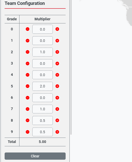 Use the Team Blender feature to define your team structure by specifying the grade levels and quantities (multipliers) for each role. The application uses breakeven rates (SAL + OH) for each grade in each location to calculate accurate costs. In this example, the team consists of 5 FTE, using staff of grade 2, 5, 7, 8, and 9.